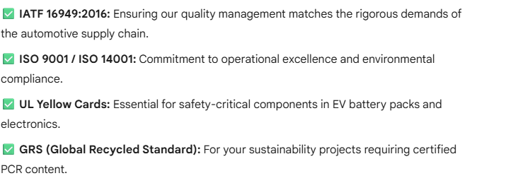 • Zero Tariffs (ATIGA): Under the ASEAN Trade in Goods Agreement (ATIGA), modified plastics produced in our Vietnam facility enter Thailand with 0% Import Duty (Form D).