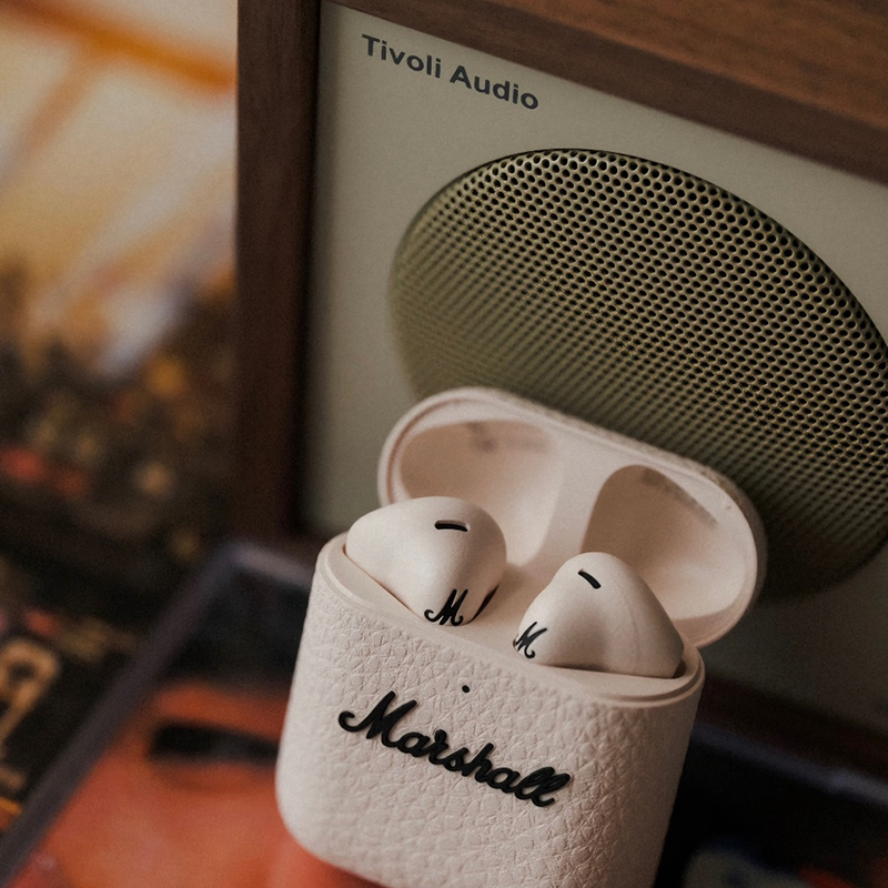 Used in Marshall headphones, showcasing a white exterior with a genuine leather-like grain.
